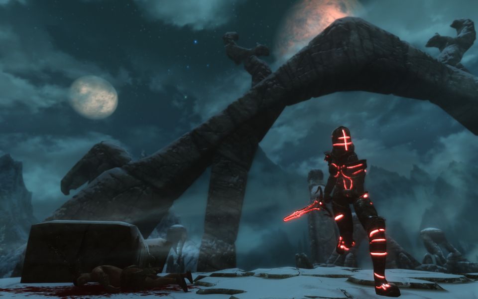 『なに…これは、まさか…馬鹿な!貴様はドヴァキンではないはず、その…その装備はなんだ!?我の魂が吸われる、こんなことが…有り得ん!!』