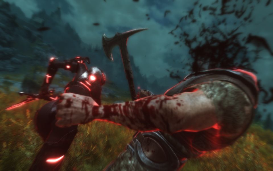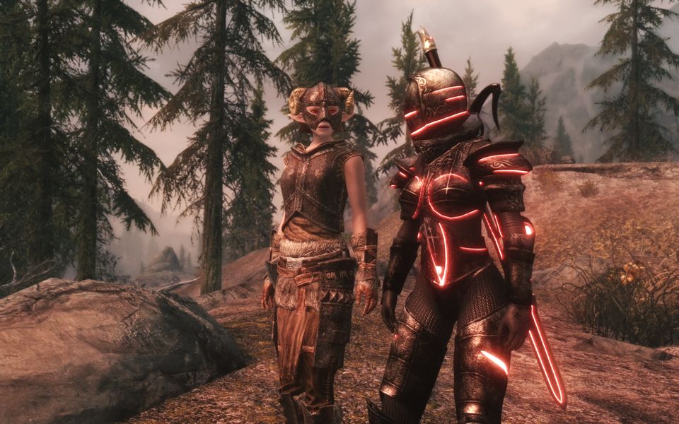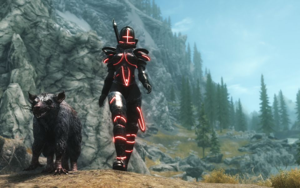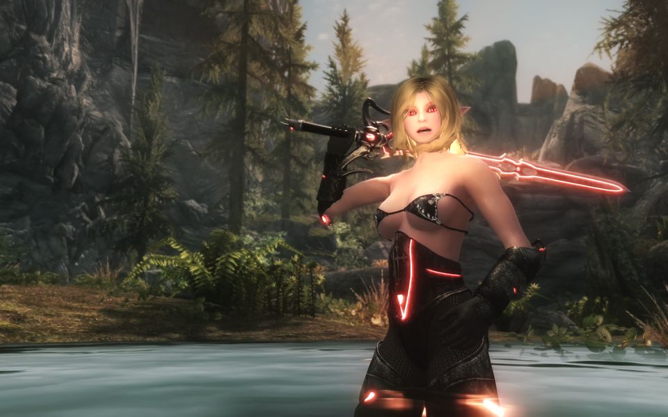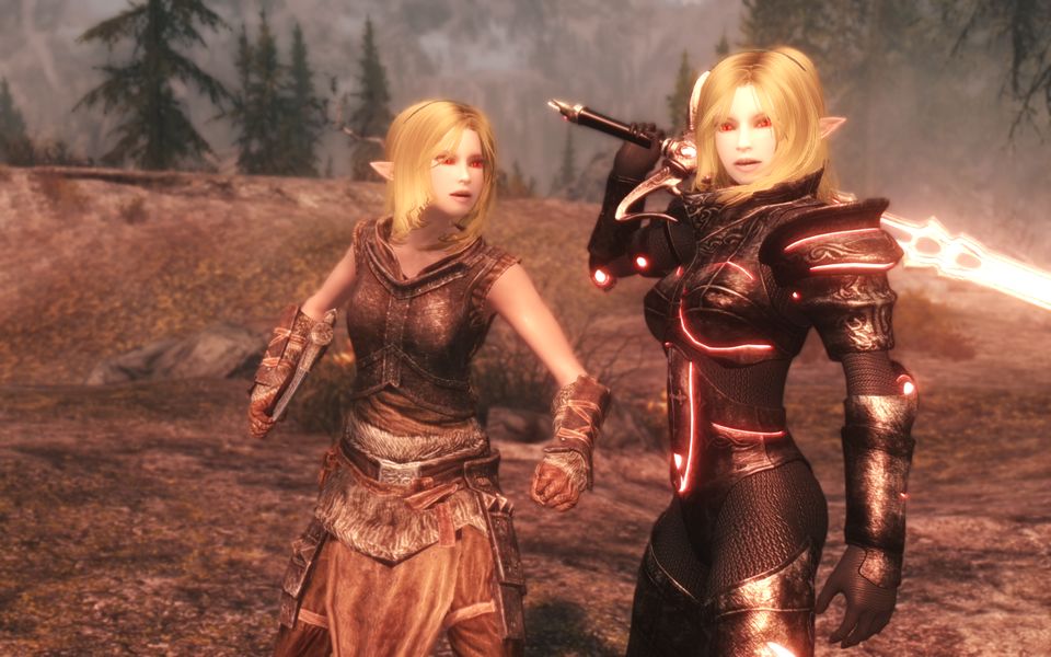 そこには、Skyrimのメインビジュアルたるドヴァキン装備(通称)に身を包んだ女の姿が!