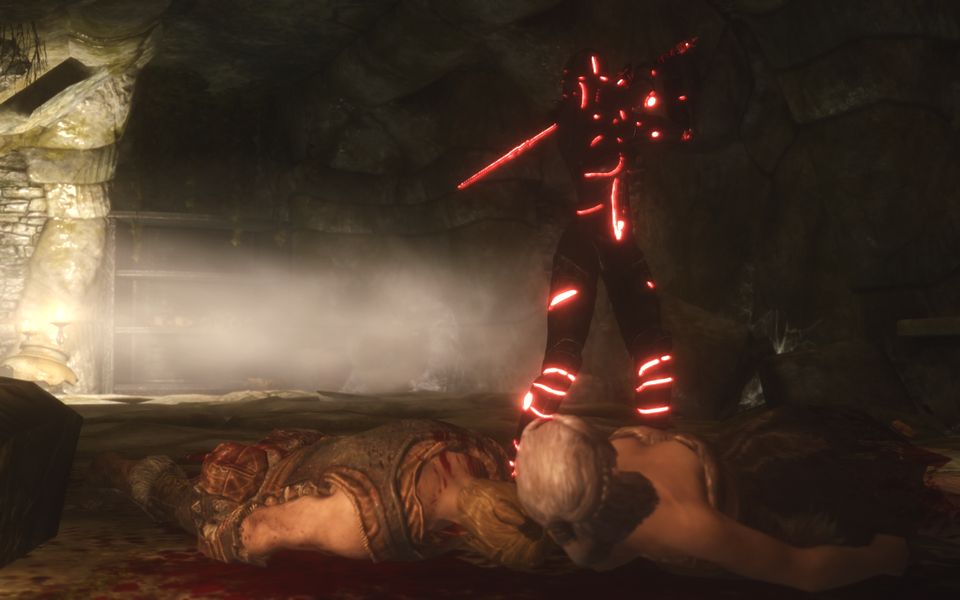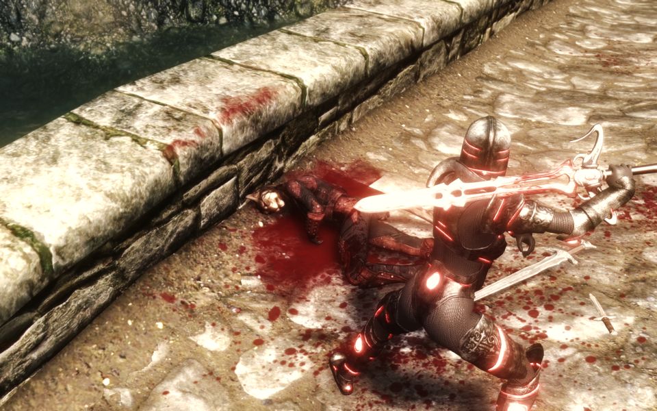 攻撃を大剣による防御で受け流し、牽制のつもりで剣を振りかぶる。しかしカジートの女暗殺者はその一撃で呆気なく死亡してしまった。