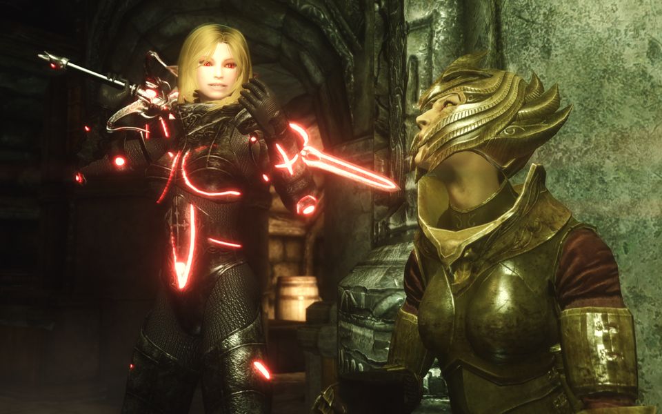 スカイリム用のキャラじゃなければ銃とか持たせたいデザインなんですけどね。スパスとか。メシアンとかガイアーズとかそんな感じで。メガテン的終末世界といえば、装備の元ネタのロンドン地獄門が丁度そんな感じだったりするんですけど。