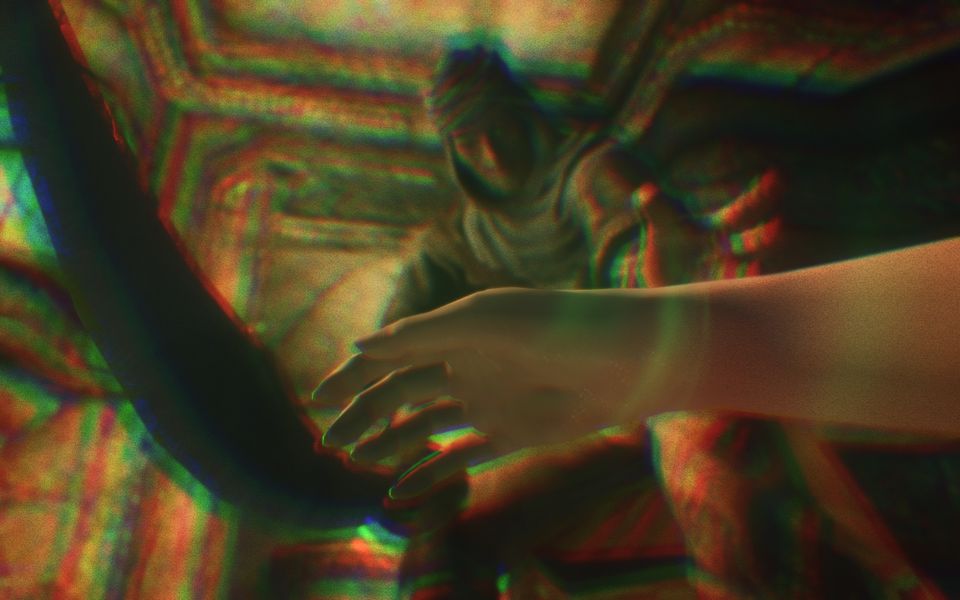 シャウトを記した言葉の壁を見つめるトレーズの背後で、棺の重い蓋を開けて何者かが飛び出す。
