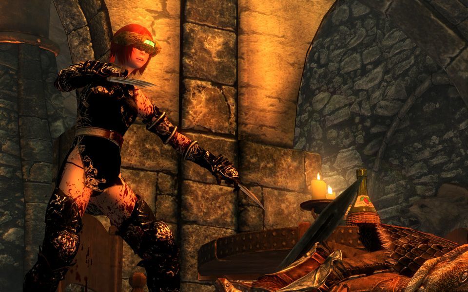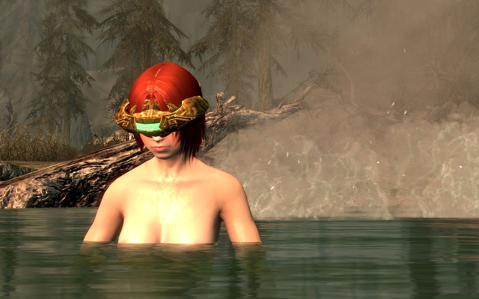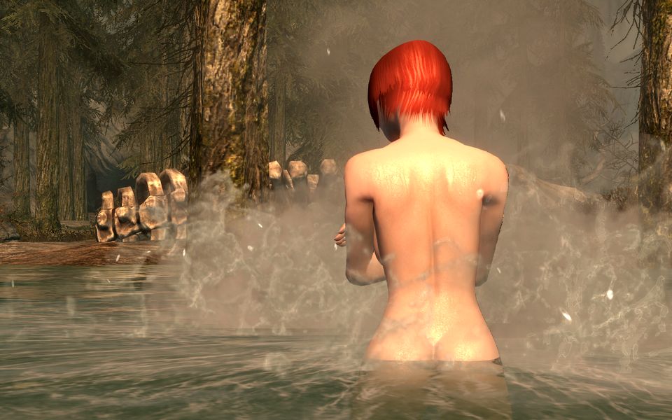 で、いつだったかSkyrim(というかECE)のカラースライダーだとOblivionのときほど肌を白くできないことを嘆いていたのだが(Textureの明度を上げればよかろうと思っていたのだが、作業が面倒臭すぎて手をつけてなかった)、ふとECEと競合して導入できなかった某種族MODの存在を思い出し、Textureのみを導入してみたところ上の写真のような美白スキンを手に入れることができた。下の毛はもちろん、ホクロ一つない完璧な美肌である。これだよ俺が求めていたのは!
