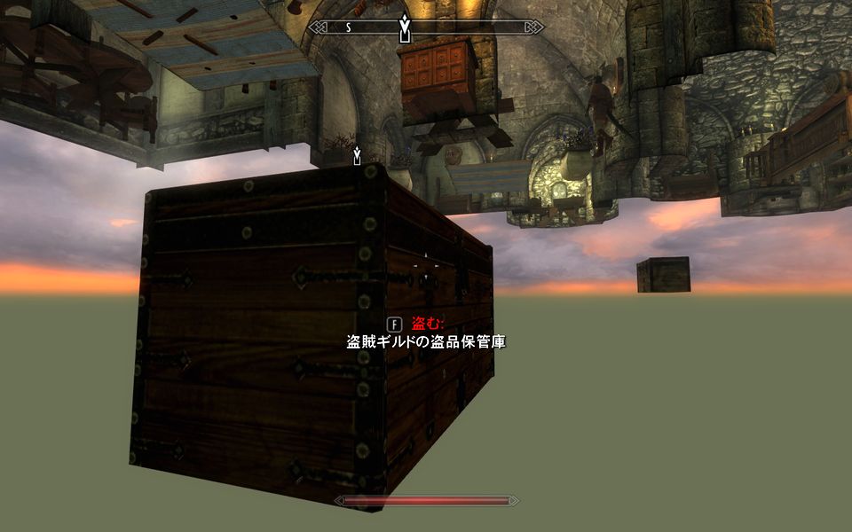 ウィンキング・スキーヴァーには「宝箱」「盗賊ギルドの盗品保管庫」「削除不可」という三つの宝箱が置いてあり、しかも削除不可は取得可能なアイテム扱いだった。どうもクエストのフラグ管理に使用するらしい、他のも似たような役割があるんだろうと思われる。