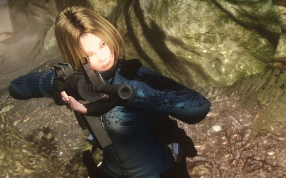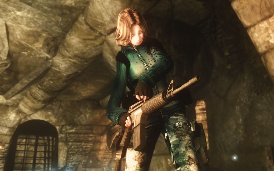 装備の内訳は、前回の副産物(Fox Collection 40と42のコンパチをリテクスチャ)にJill battlesuit RE5とChapman Tomb Raiderのnifからパーツを移植したもの。元のテクスチャだと少し明る過ぎたので色を暗めに調整したのだが、なんか一枚目以外の写真では真っ黒だなぁ…失敗した。