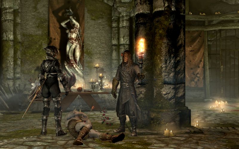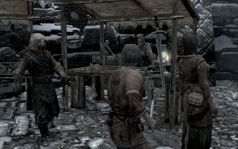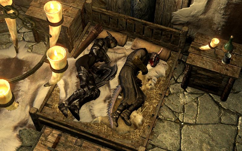 それはそうと、スカイリムの住民はあまり着替えという概念がないらしい。たとえばシロディールの衛兵なんかは就寝時は私服に着替えてたものだが。