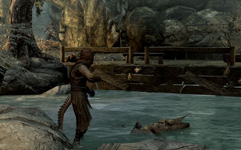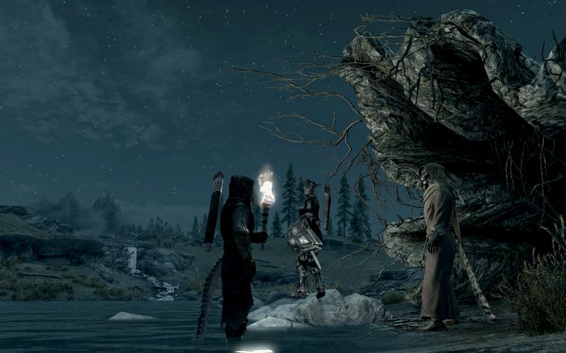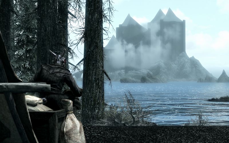 スカイリム北部、アイスウォーカー桟橋近くのキャンプで一夜を過ごす。