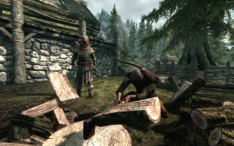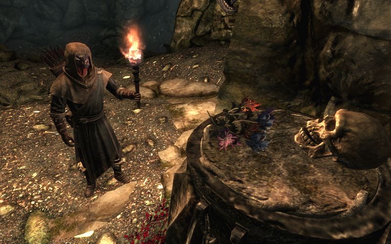 とまぁ、威勢のいいことを言ってみたところで…俺の名はアーケイド、アルゴニアンの商人だ。どういうわけか北方スカイリムで帝国軍に処刑されかけ、なんでか今は山賊キラーとして大活躍中だったりする。というかこの雑魚ども(ボス格はそうでもないが…)を相手にしてると、最初に戦ったウィスプマザー(さっき回収した書物に記述があったんだぜ)がいかにキチガイじみた強さだったかわかるってもんだ。