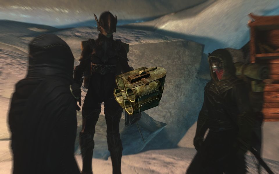 「この最後の洞窟を開くことはドゥーマーにしかできない。だが、それはもはや不可能だ…みな死に絶えてしまったのだからな。もっとも、どうにかして誤魔化す手も、なくはない。エルフ族の血を使うのだ。アルトマー、ボズマー、ダンマー、ファルマー、オーシマー…」