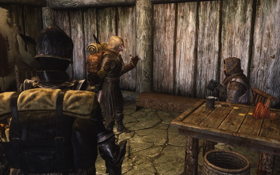 ウィンターホールドへと戻った俺は大学を探そうかと思ったが、ひとまず休息を取るため宿屋に立ち寄り、一杯ひっかけるついでに店主に付術師のことを訊ねると、どうもかつて大学の付術師だった男が宿に下宿しているらしいことを聞き、彼に会いに行くことにする。