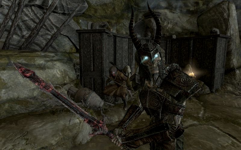 いまさら愚痴を言っても仕方がない、エオラと協力して古代ノルド人のアンデッドどもを討伐し、洞窟内部の安全を確保する。このとき、以前ブリーク・フォール墓地でドラウグルと戦った経験が多いに活きた。