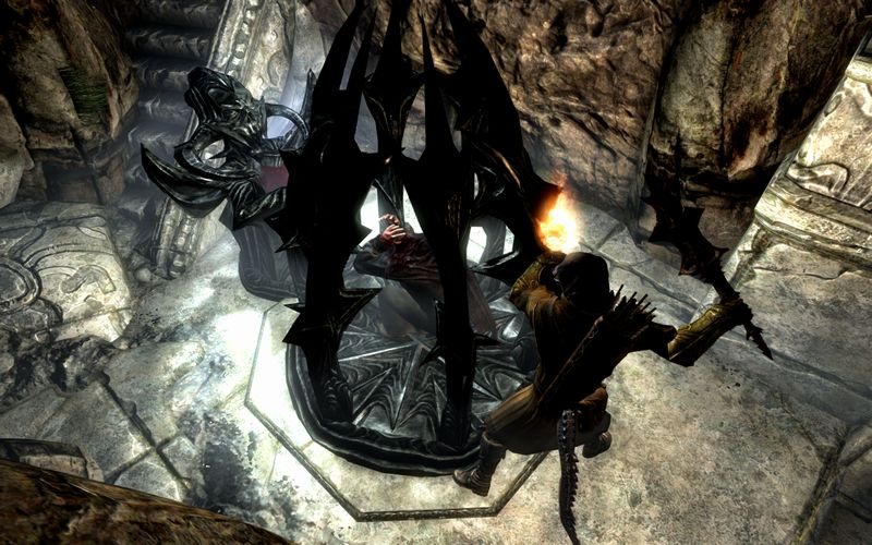 ファルメルと、おまけに深部にはフロスト・バイト・スパイダーまで棲息しており、俺はそいつらを退治しながら最深部へと向かった。そこには祭壇と思しき場所に捧げられた生贄と、そして見たことのない巨大な昆虫がおり、俺はどうにかそいつを退治したが、結局この場所が何のために用意されたものなのかはわからなかった…