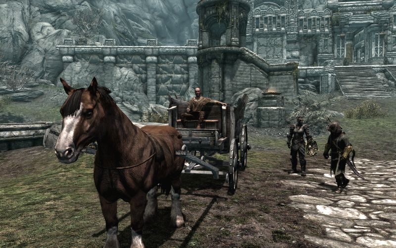 「そうそうスカイリムには馬車があるんじゃんよー!これなら遠くまで早く安全に移動できるってもんだ」