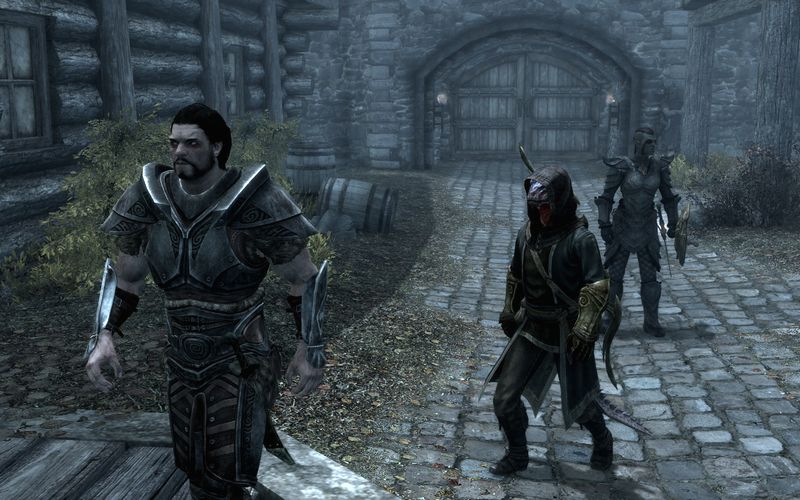 「実はいま、腕の立つ戦士を探してたんだが…ちょいと一人旅に限界を感じてたところでね。行き先?西はマルカルスから東はリフテンまで、敵は山賊盗賊に野生動物、異界のバケモノ、フォースウォーンにファルメル…とにかく退屈だけはしないぜ。いい装備だって手に入る」
