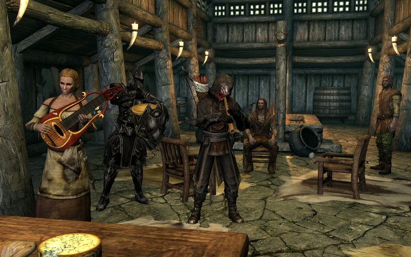 ボルガクを伴い宿でリュートを演奏する女性の横で無断で演奏に加わる俺。もちろん宿の主人に怒られた。