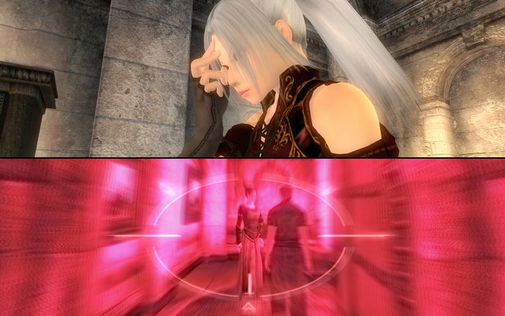 NPCを椅子に座らせるコマンドが存在しないため、プレイヤーがギルバート(と同じ顔のキャラ)を操作することで解決するという非常に荒っぽい方法を使ったのだが、Import Faceでギルバートの顔を複製してからデータをロードしたところ、当然ながら直前までリアだったプレイヤーはリアの服装をしているギルバートを操作することに。