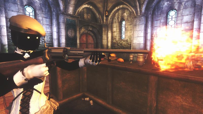 ブラックパウダーの銃は発砲煙がすんごいことになるので、そのうち煙も追加したいなあとは考えてます。クヴァッチなんかでよく見かける、煙吐いて炎上してるMeshの改造でどうにかならんかなあと思案中。