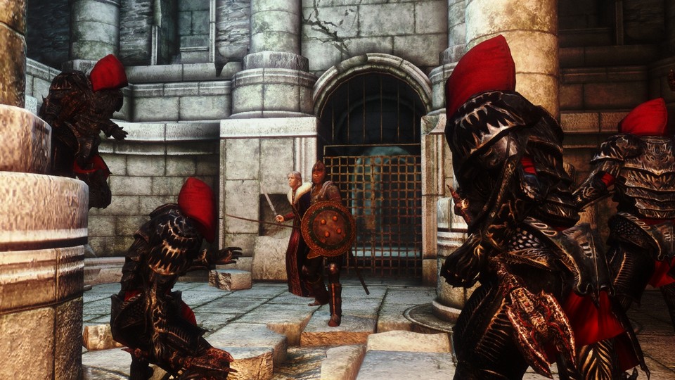 画面が赤いのは夕方だから…ではなく、じつはこれオブリビオン領域の天気だったりして。